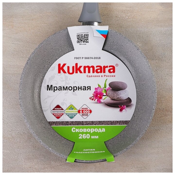 Купить Сковорода Kukmara 260/60мм Мрамор Светлый, с ручкой, литой алюминий, смс262а