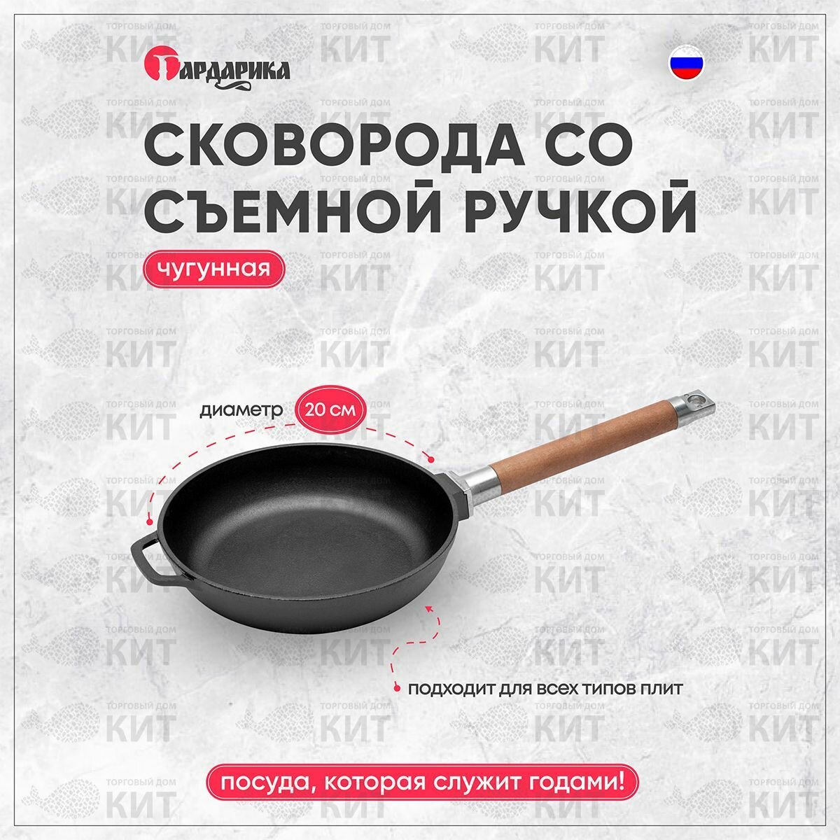 Сковорода чугунная Гардарика 0120 20см,съемная ру .