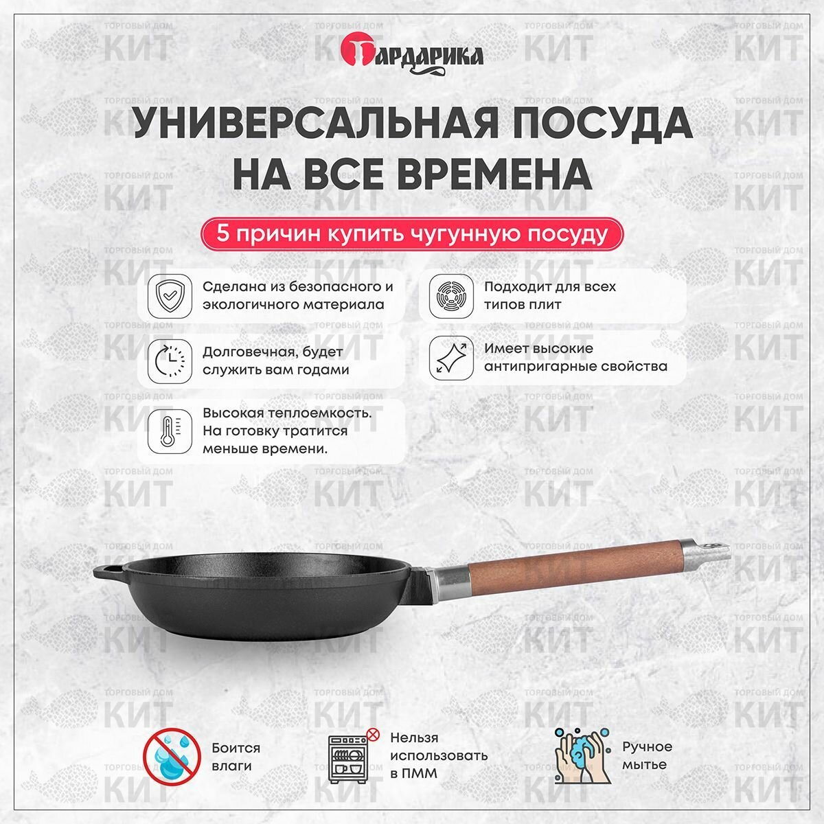 Сковорода чугунная для индукционных плит со съёмной ручкой гардарика 22 см 0122 гардарика