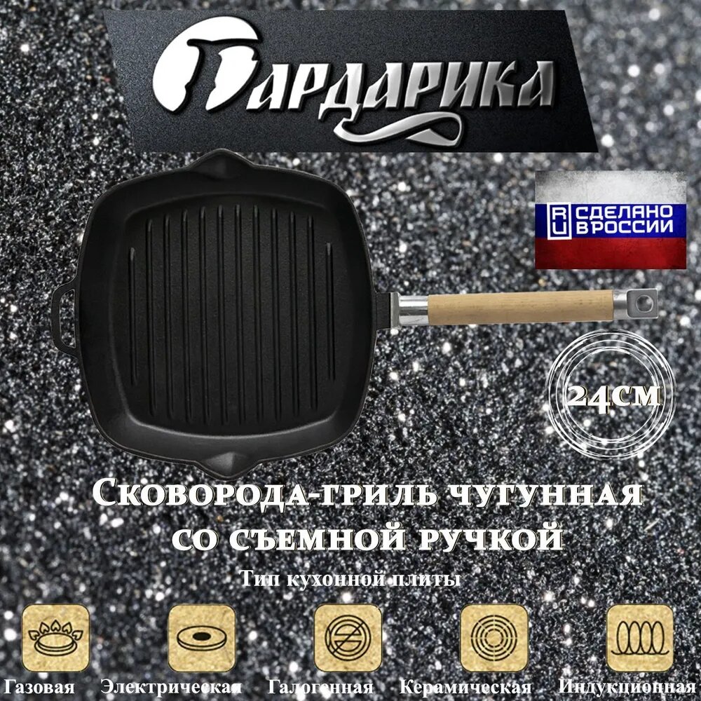 Сковорода-гриль Гардарика 24х24см со съемной ручкой (0624)
