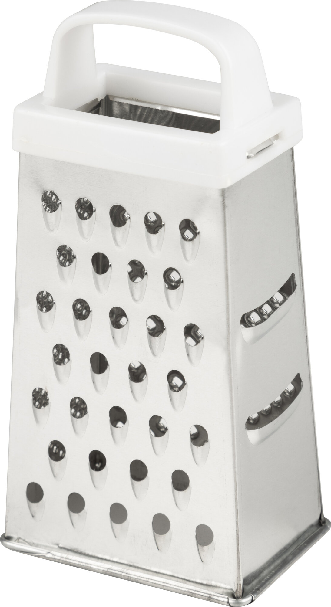Терка четырехгранная, жесть, 8,5 x 6,3 x 17 см, пластиковая ручка, белый