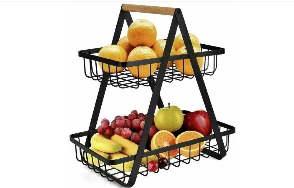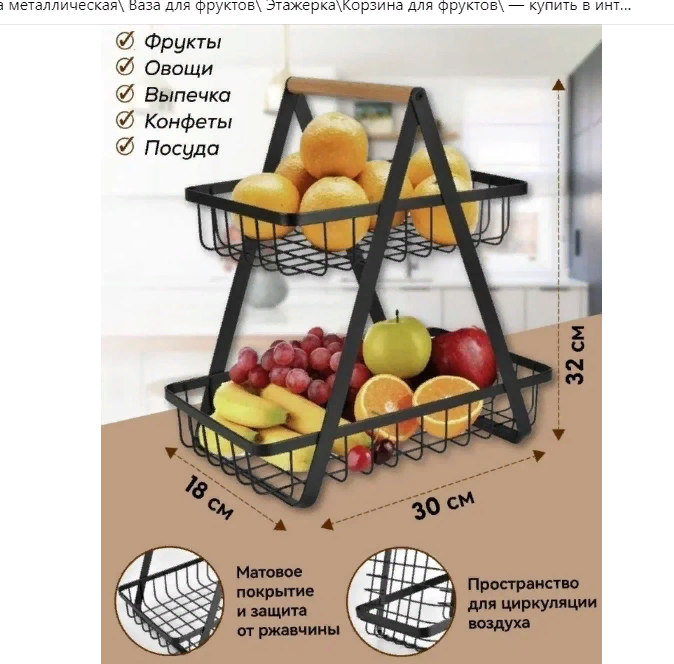Корзина для фруктов, треугольная, двухъярусная, металл, чёрная интересное: