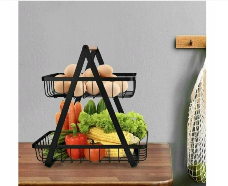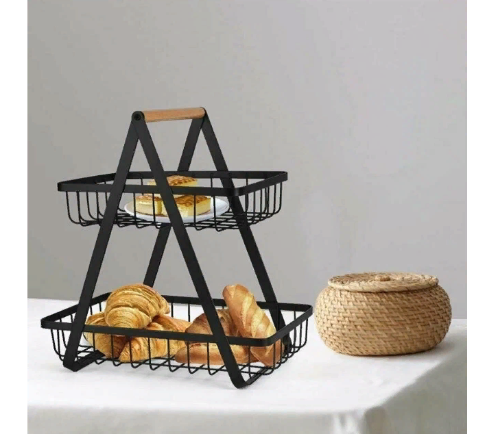 Купить Корзина для фруктов, треугольная, двухъярусная, металл, чёрная