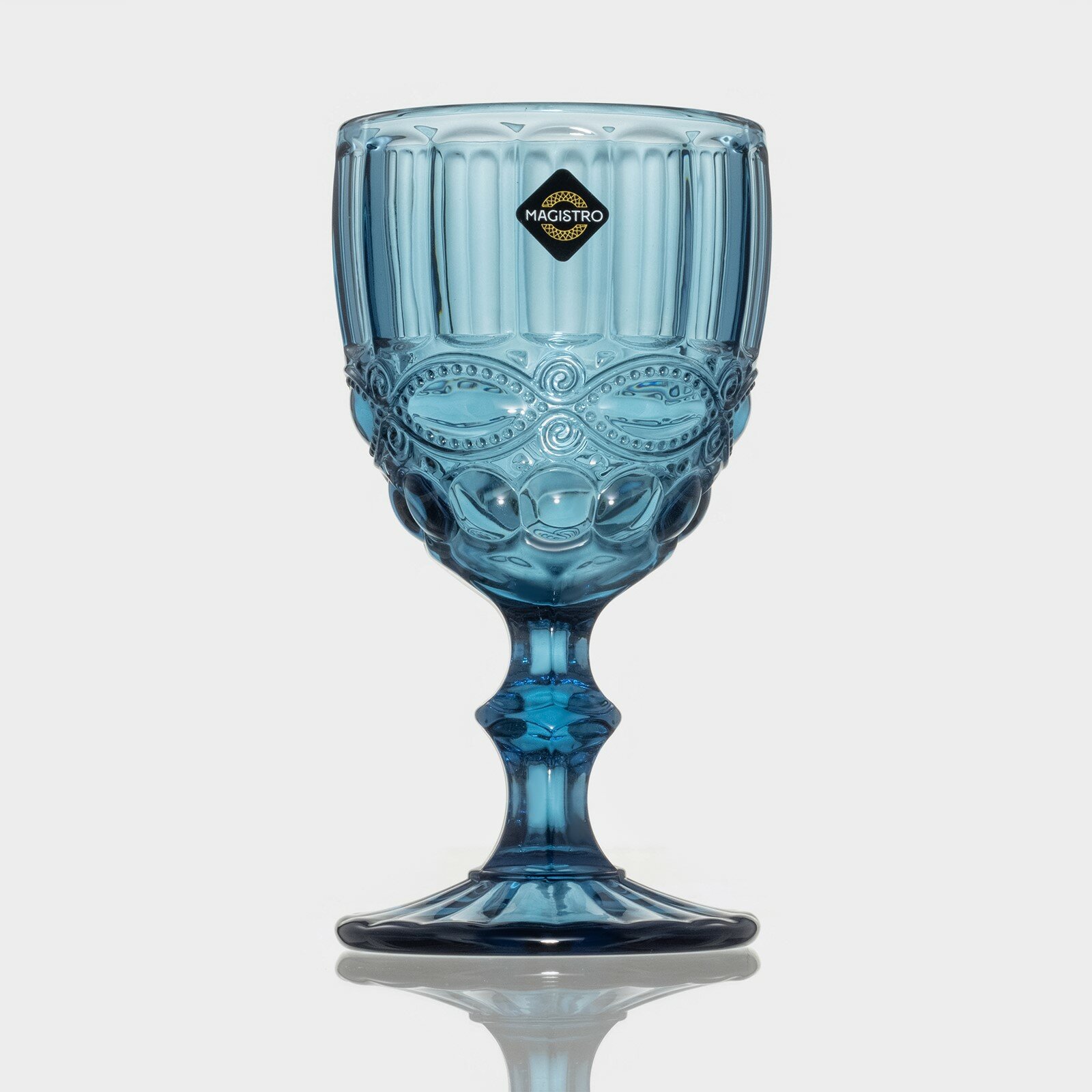 Купить Набор бокалов стеклянных для вина на 2 персоны Magistro «Ла-Манш», 250 мл, цвет синий