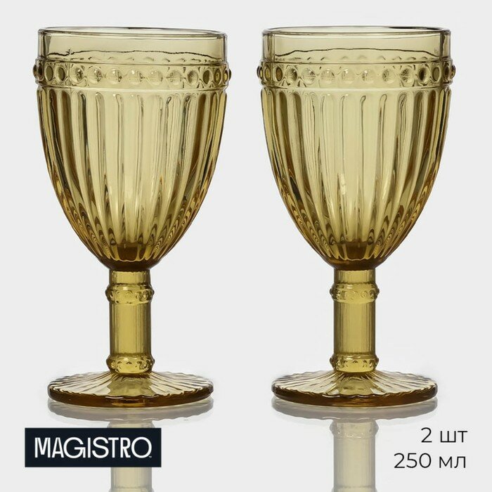 Купить Набор бокалов для вина стеклянный Magistro Босфор, 250 мл, 8,5?16,5 см, 2 шт, цвет жёлтый Magistro .