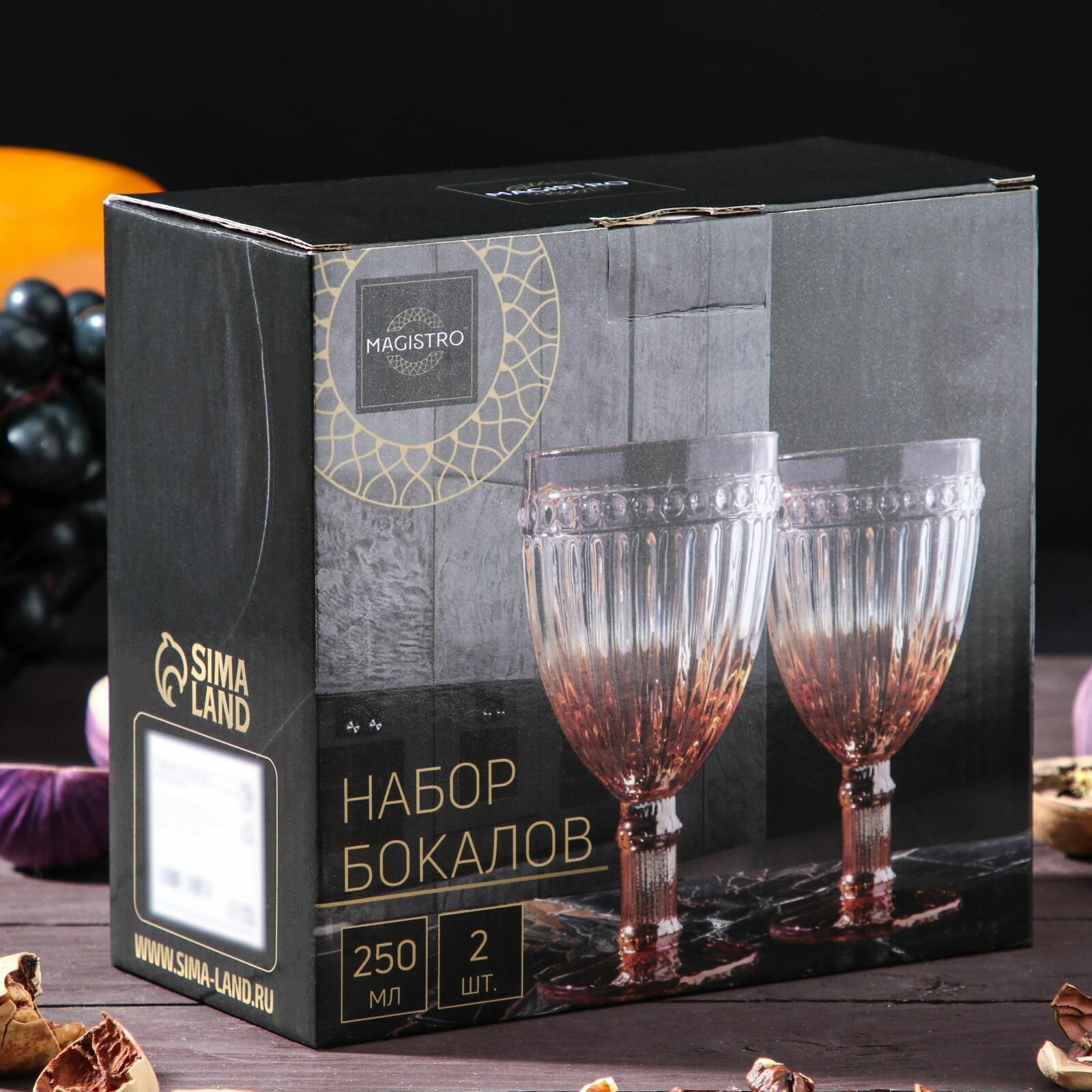 Бокалы для вина Magistro «Ла-Манш», 250 мл, набор 2 шт, стекло, розовые