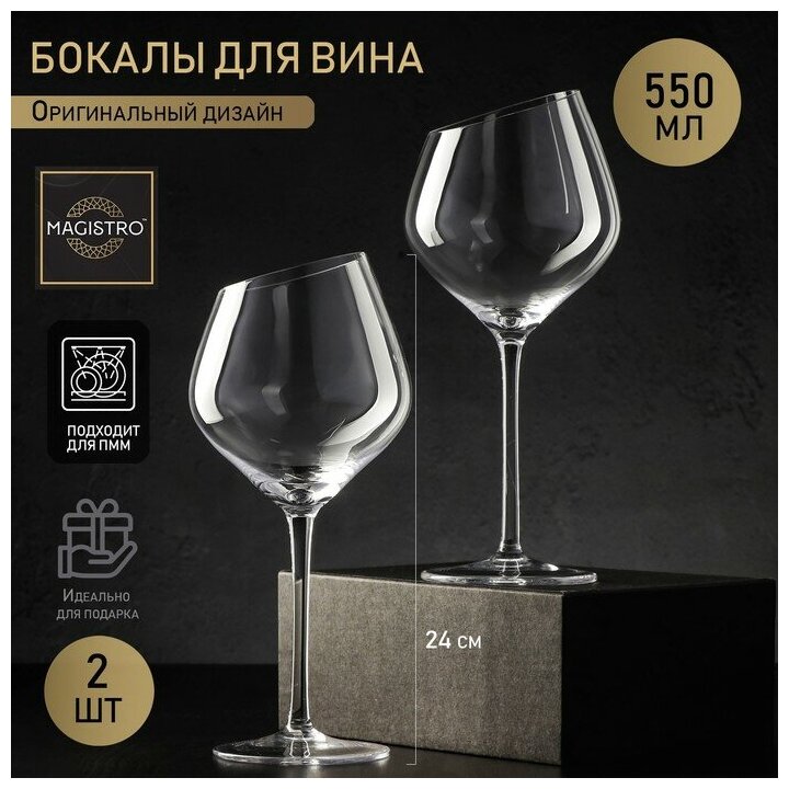 Купить Бокалы стеклянные для вина Magistro «Иллюзия», набор 2 шт, 550 мл