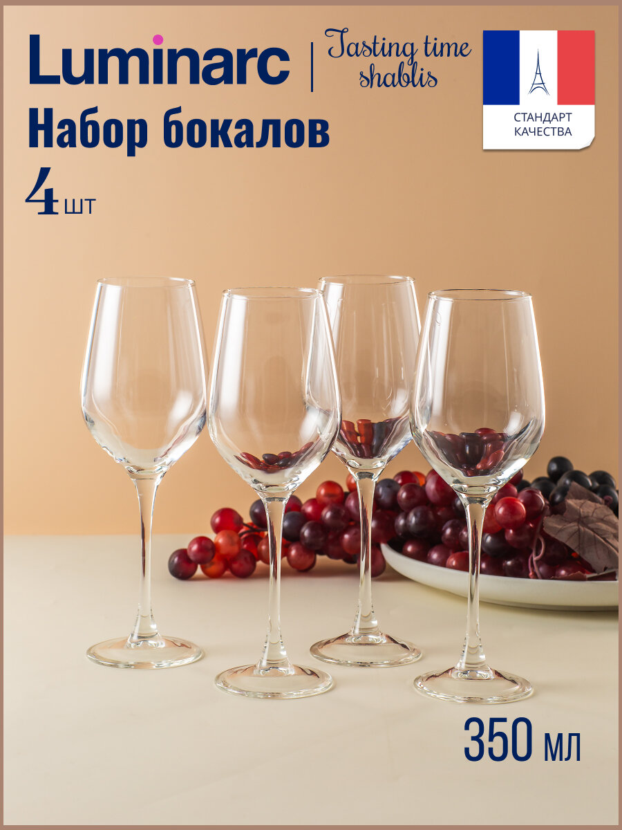 Купить Набор бокалов для вина и шампанского Luminarc время дегустаций шабли 4 штуки 350мл