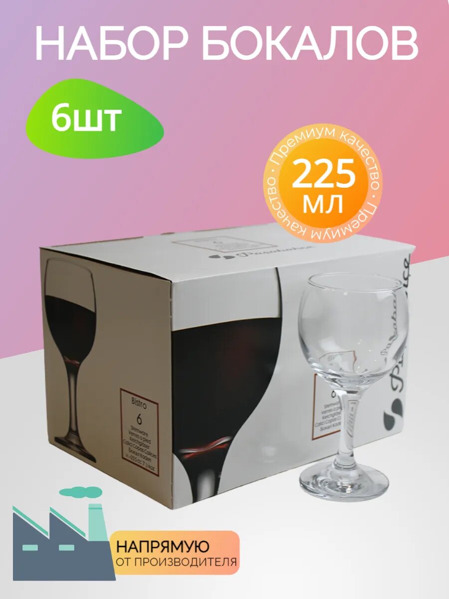 | Дополнительная информация | Бокалы стеклянные для вина 350 мл бренда Pasabahce, набор 6 шт. |