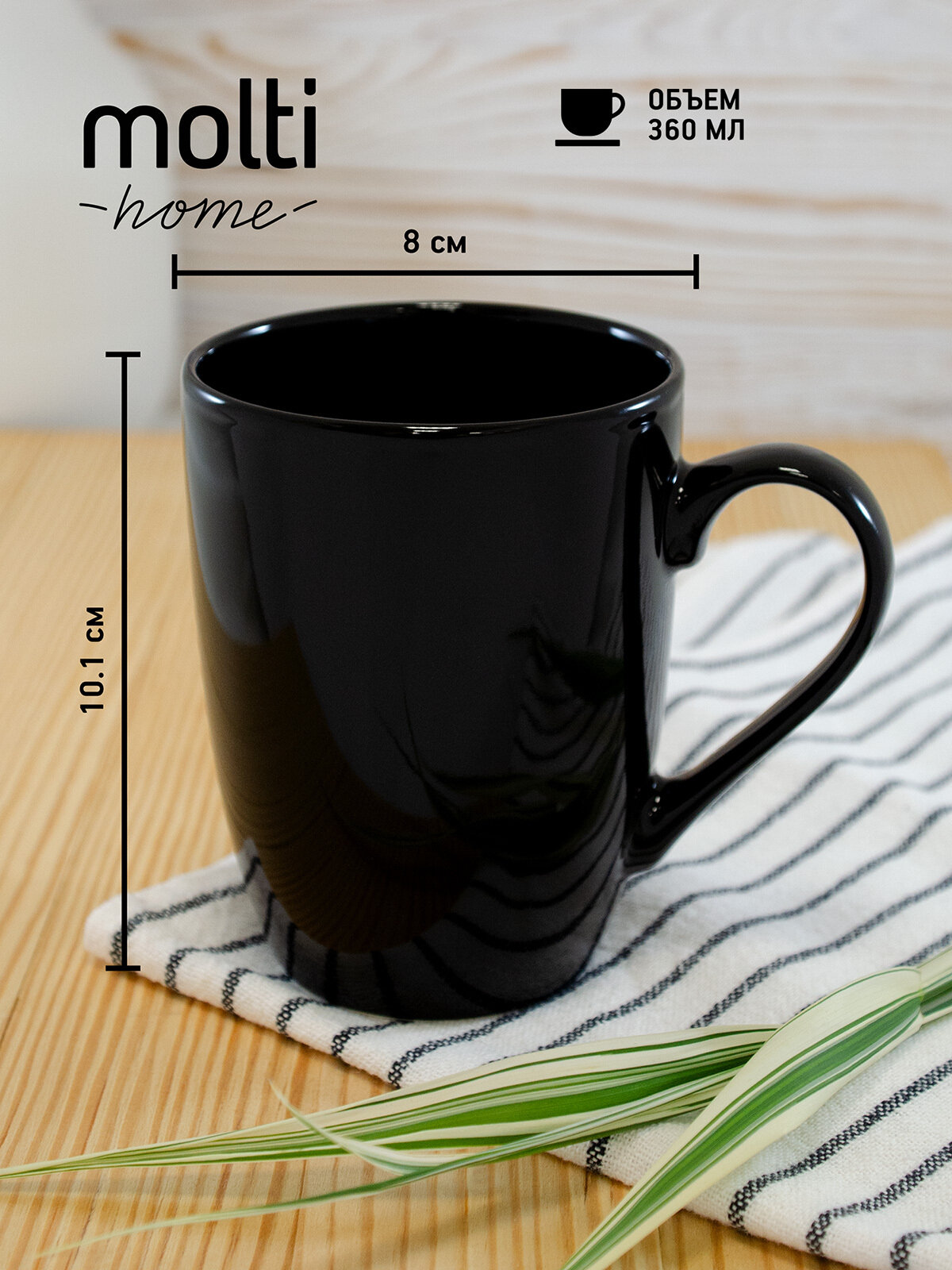 Кружка для чая, кофе, большая, фарфоровая, чашка, глянцевая Pick Up, черная, 360 мл