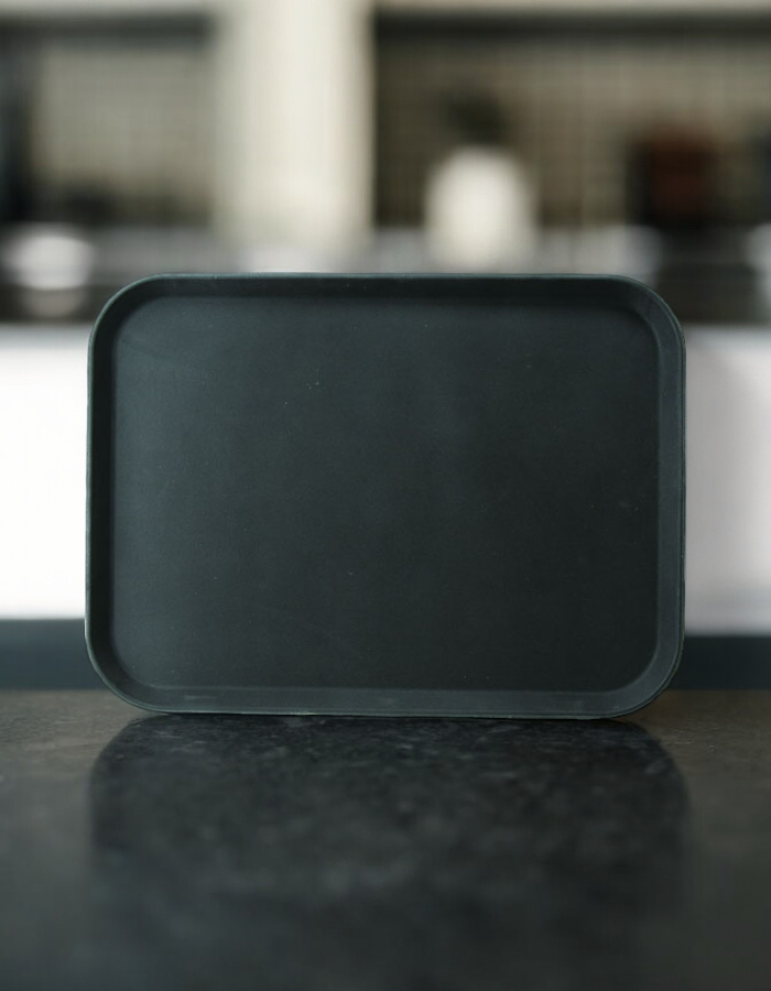 Поднос прямоугольный ; стеклопластиковый,прорезиненный; высота=20, длина=355, ширина=255 мм; цвет: черный