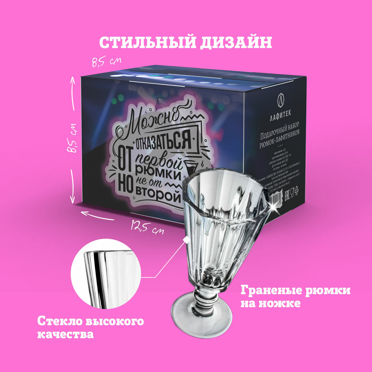 | Комплектация | Подарочная коробка, Рюмка-лафитник граненая 25 мл - 6 штук |