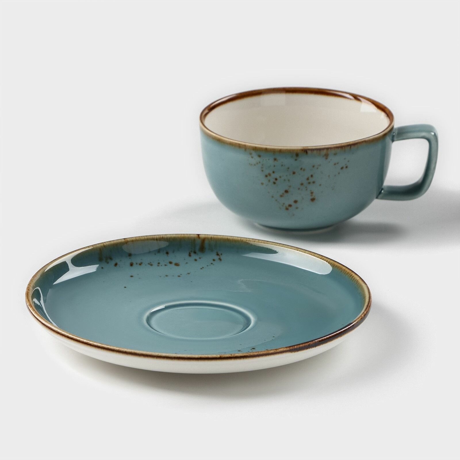 СохранитьЧайная пара фарфоровая для сервировки стола, кружка с блюдцем для чая и кофе Magistro "Церера", 250 мл, цвет голубой интересное: