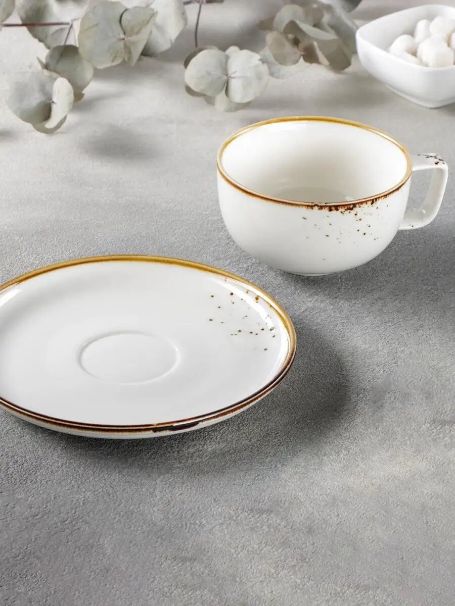 СохранитьЧайная пара фарфоровая для сервировки стола, кружка с блюдцем для чая и кофе Magistro "Церера", 250 мл, цвет белый интересное: