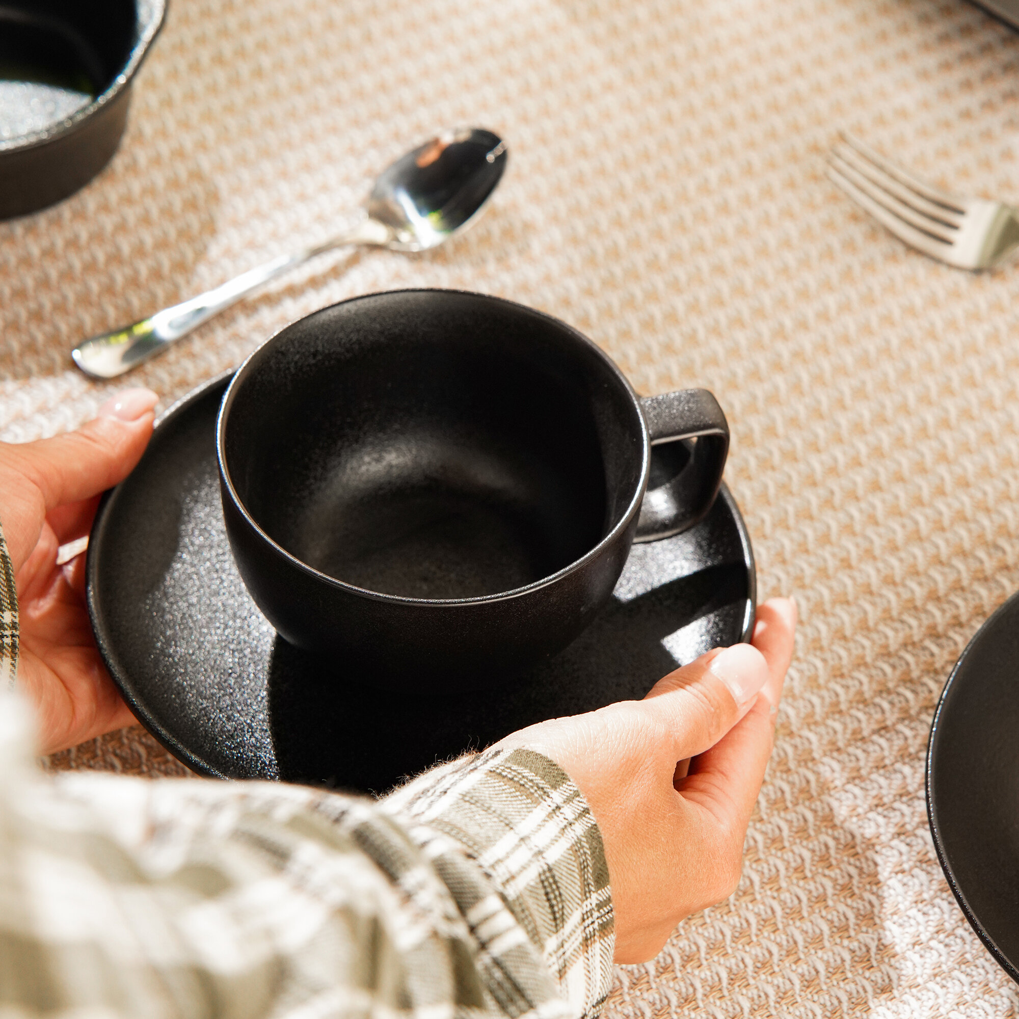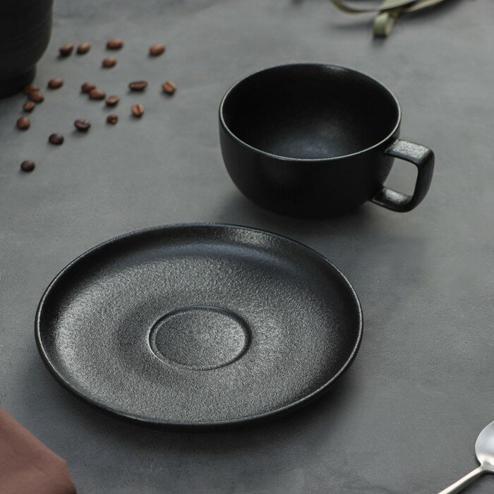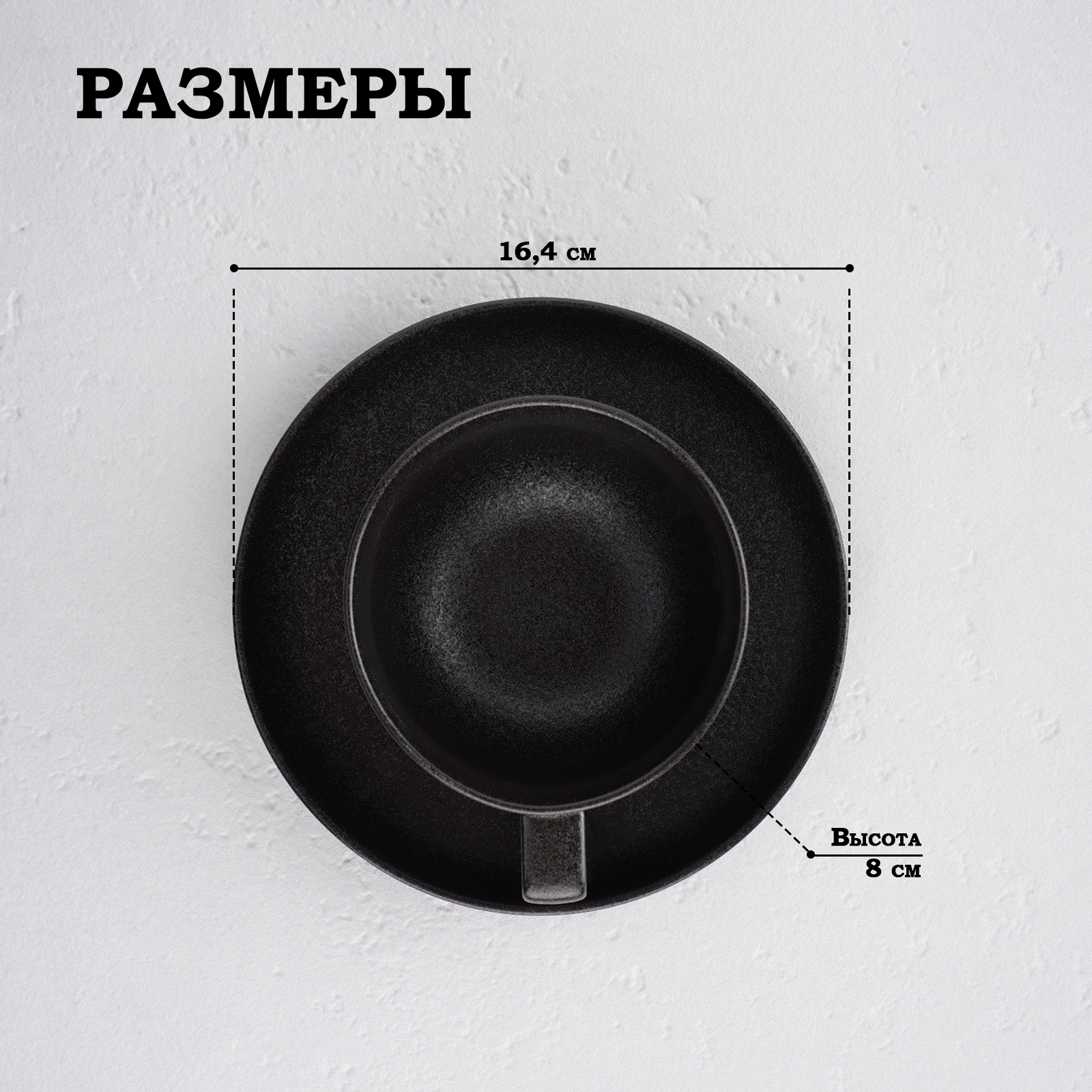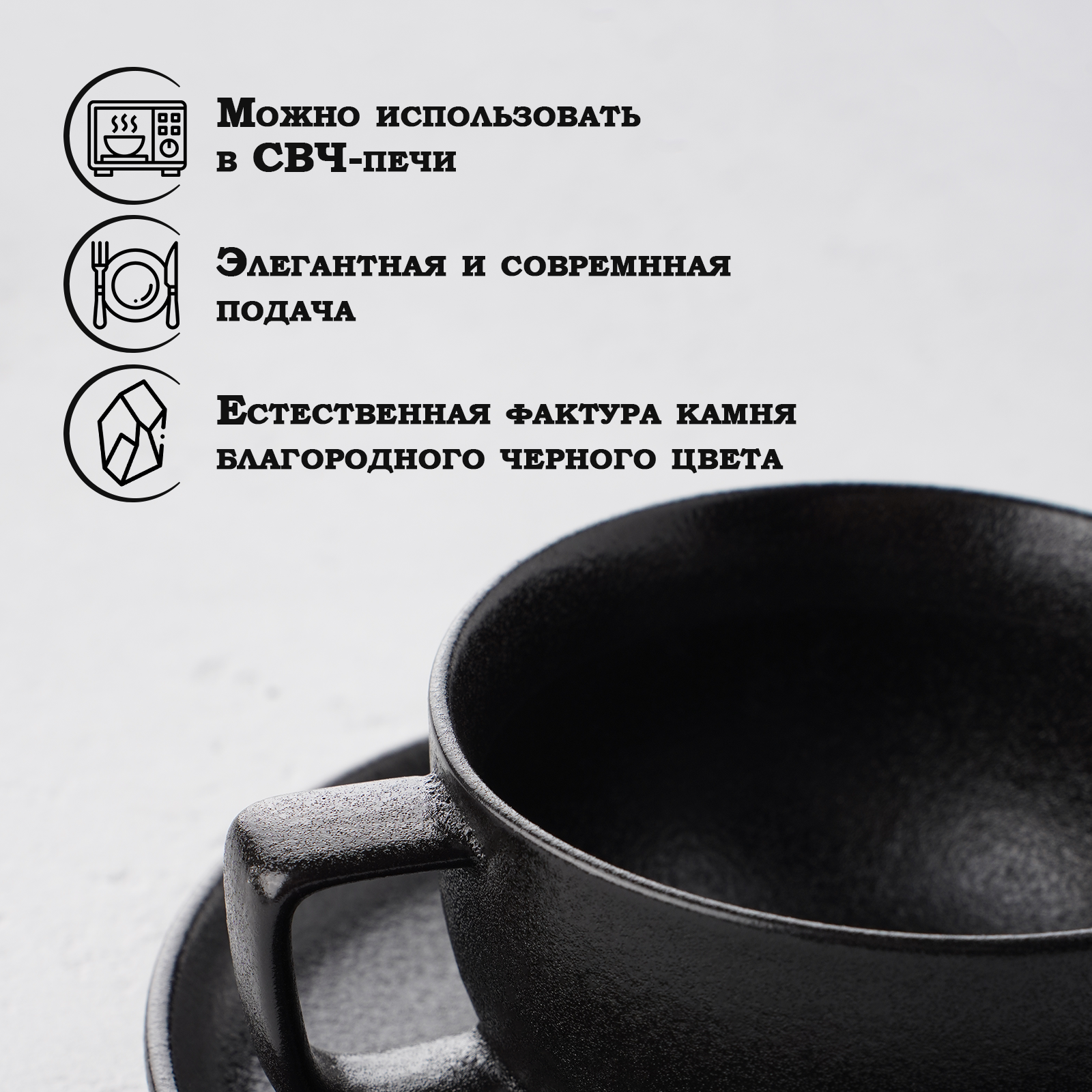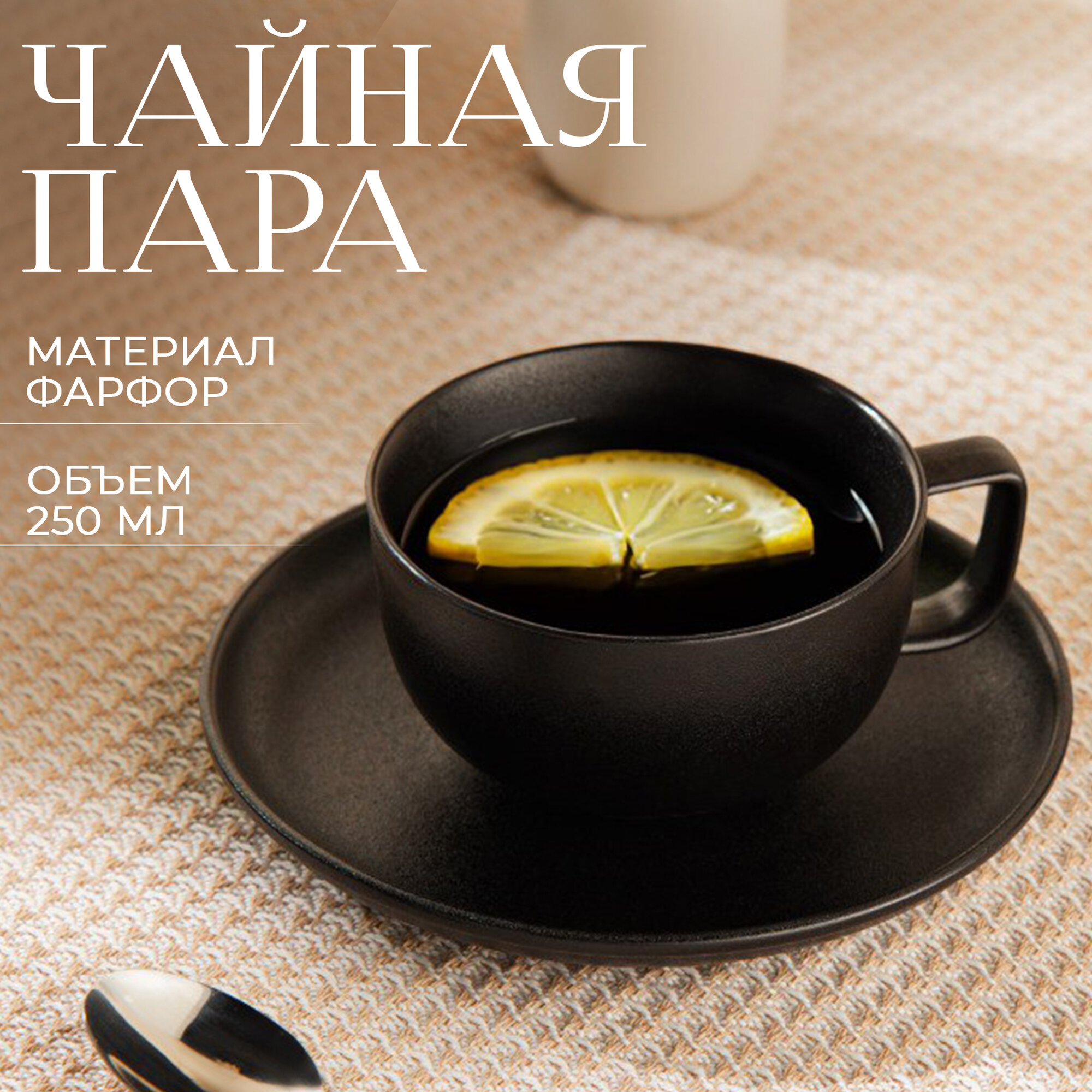 СохранитьЧайная пара фарфоровая для сервировки стола, кружка с блюдцем для чая и кофе Magistro Carbon, 250 мл, цвет чёрный интересное: