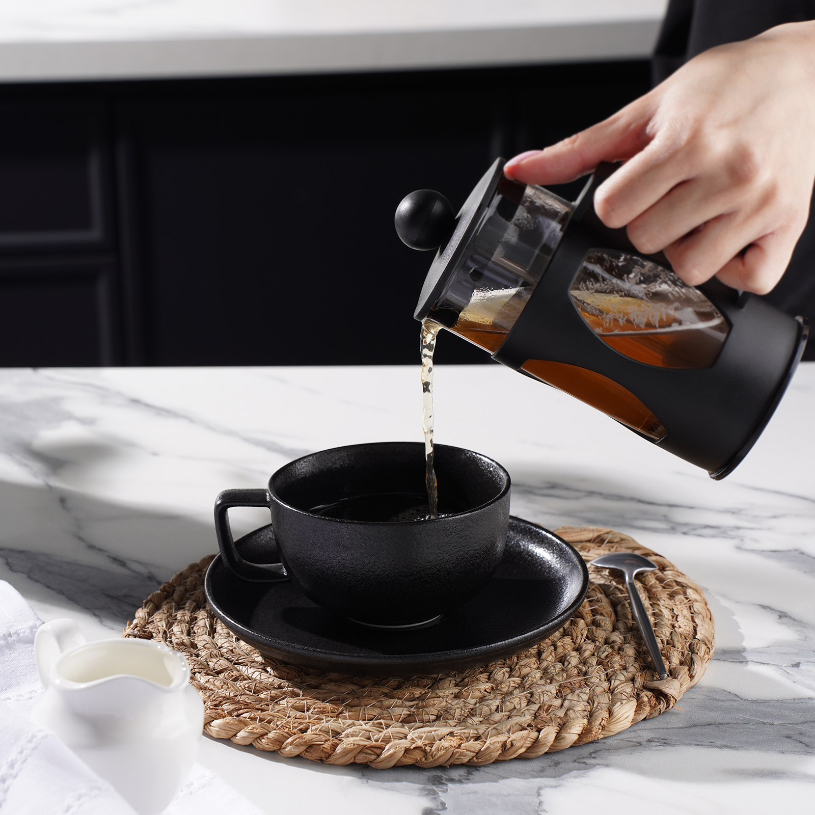 Купить Чайная пара фарфоровая для сервировки стола, кружка с блюдцем для чая и кофе Magistro Carbon, 250 мл, цвет чёрный