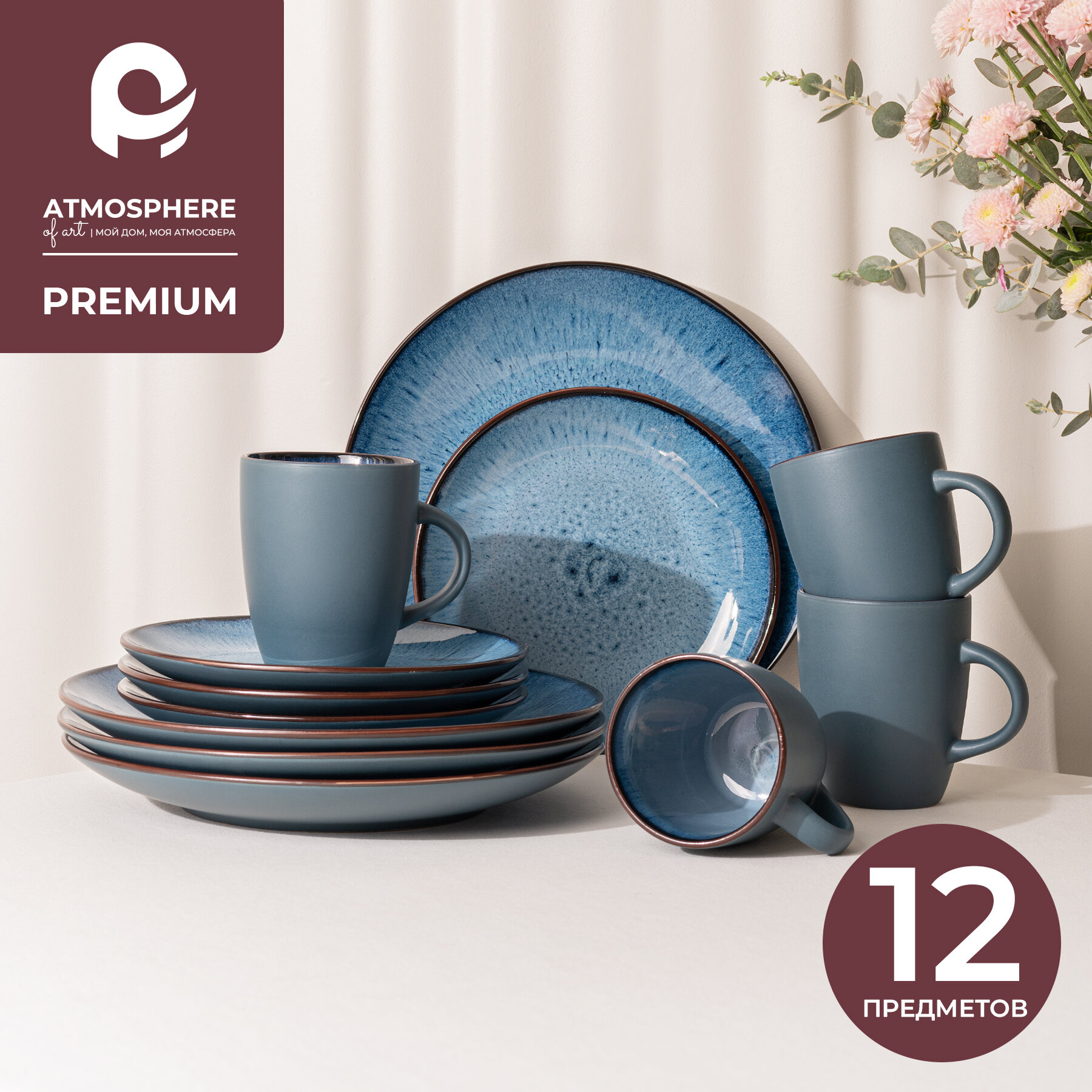 Набор посуды керамической с кружками Atmosphere of Art "Azure" - 12 предметов, синий