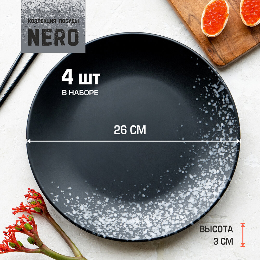 Набор тарелок 26см, 2шт Elite black тарелки круглые черные керамические тарелка для второго