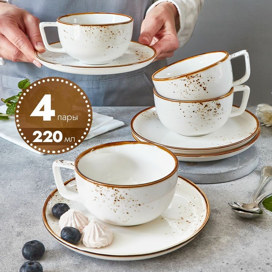 Чайная пара 220 мл, набор кружек, 4 чашки и 4 блюдца, Elegance "The Sun фарфоровые кофейные пары интересное: