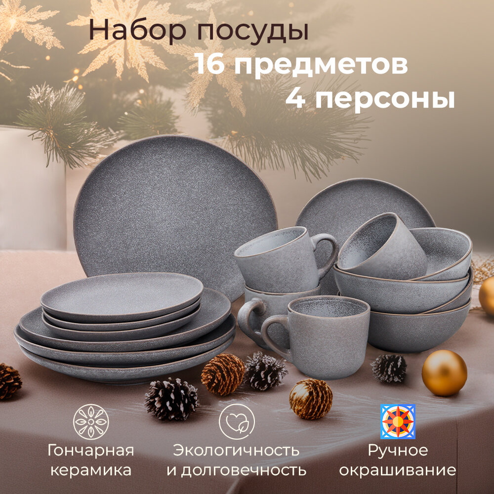 Набор посуды столовый на 4 персоны сервиз 16 предметов