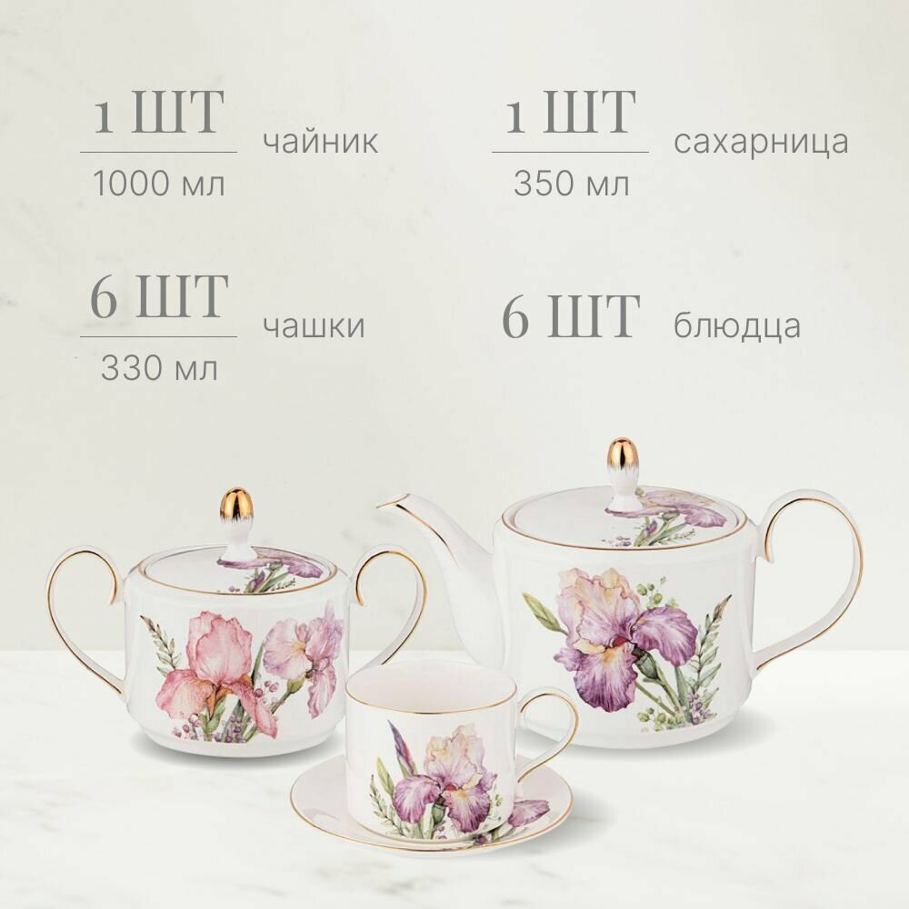 Чайный фарфоровый сервиз Lefard "Irises" на 6 персон 14 предметов
