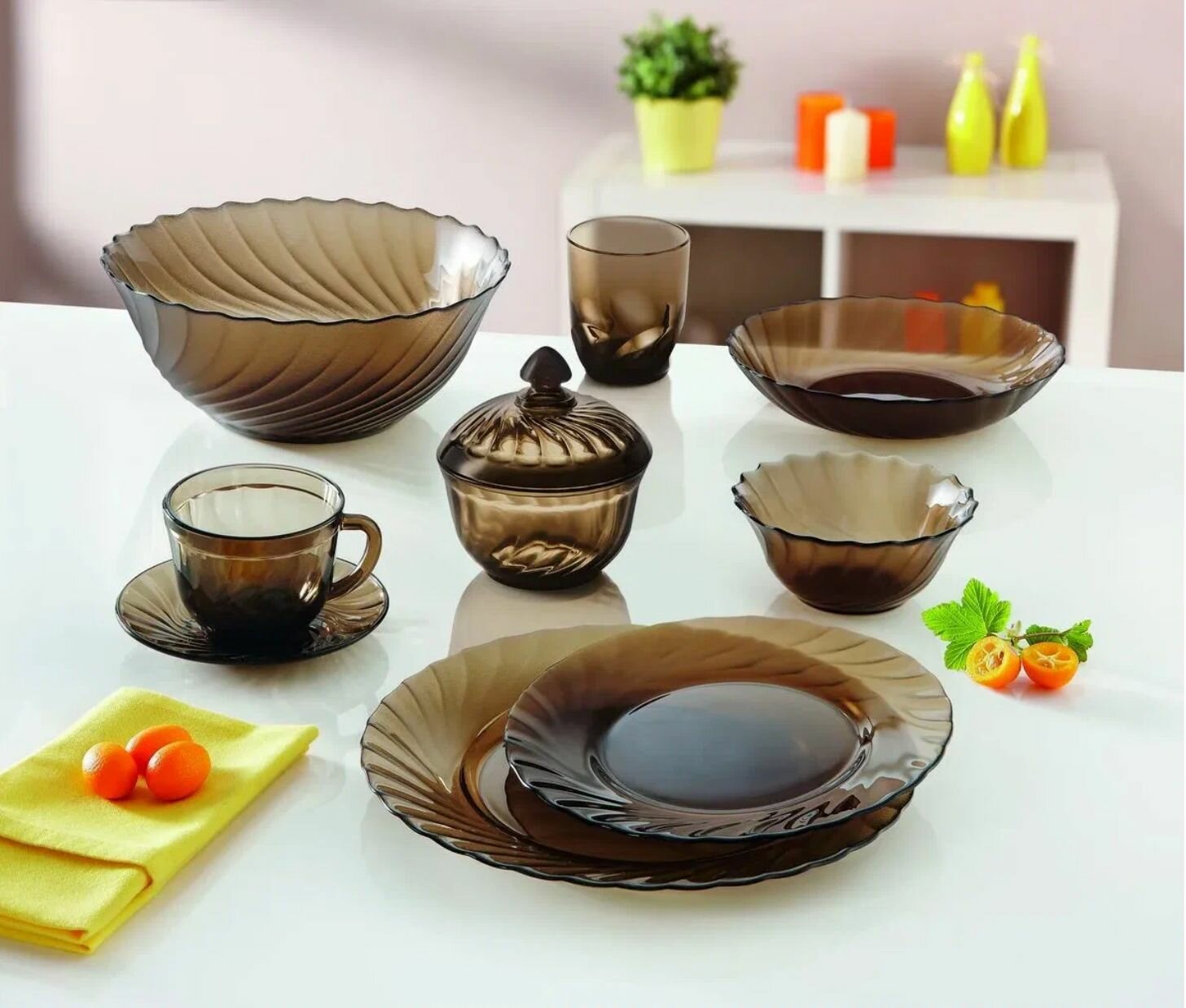 Набор столовый стеклянный Ocean. Eclipse, 19 предметов, цвет коричневый