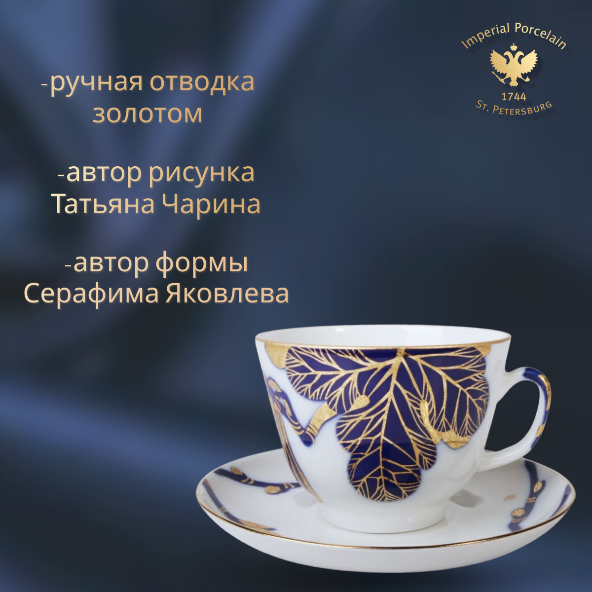 СохранитьЧайная пара 375 мл. Форма "Подарочная", рисунок "Смоковница". Твердый фарфор. Чашка с блюдцем. Императорский фарфоровый завод ИФЗ ЛФЗ интересное: