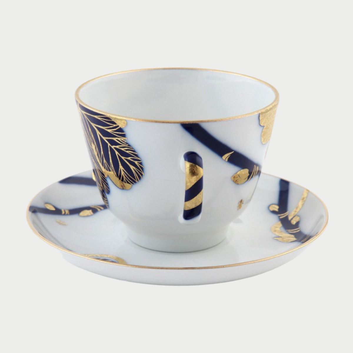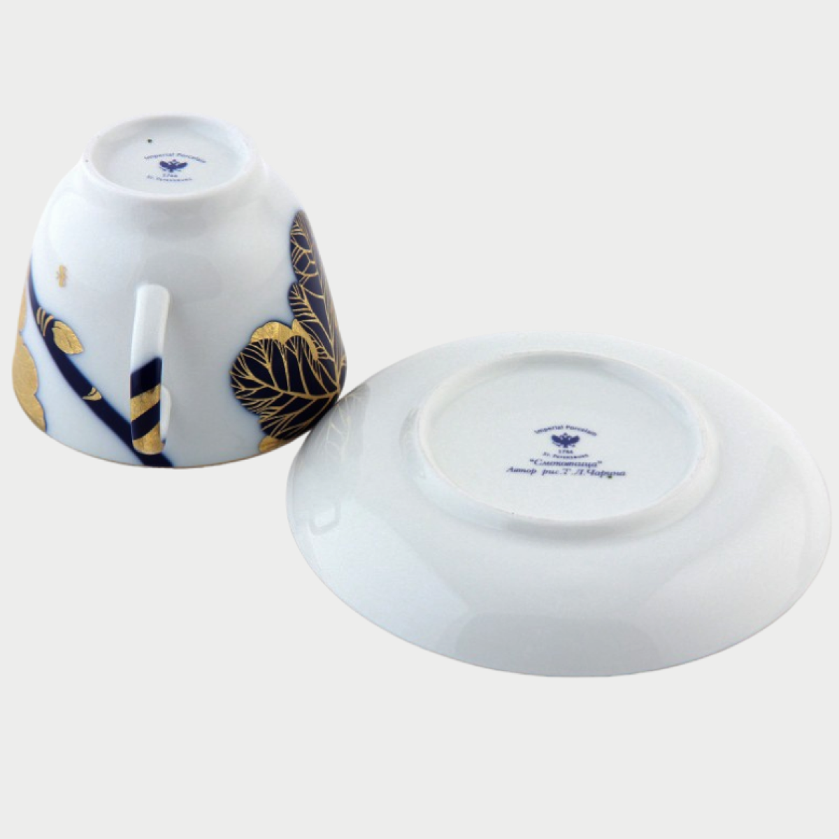 Чайная пара. Императорский фарфоровый завод. Форма "Подарочная", рисунок "Гранат золотой". Твердый фарфор. 375 мл.