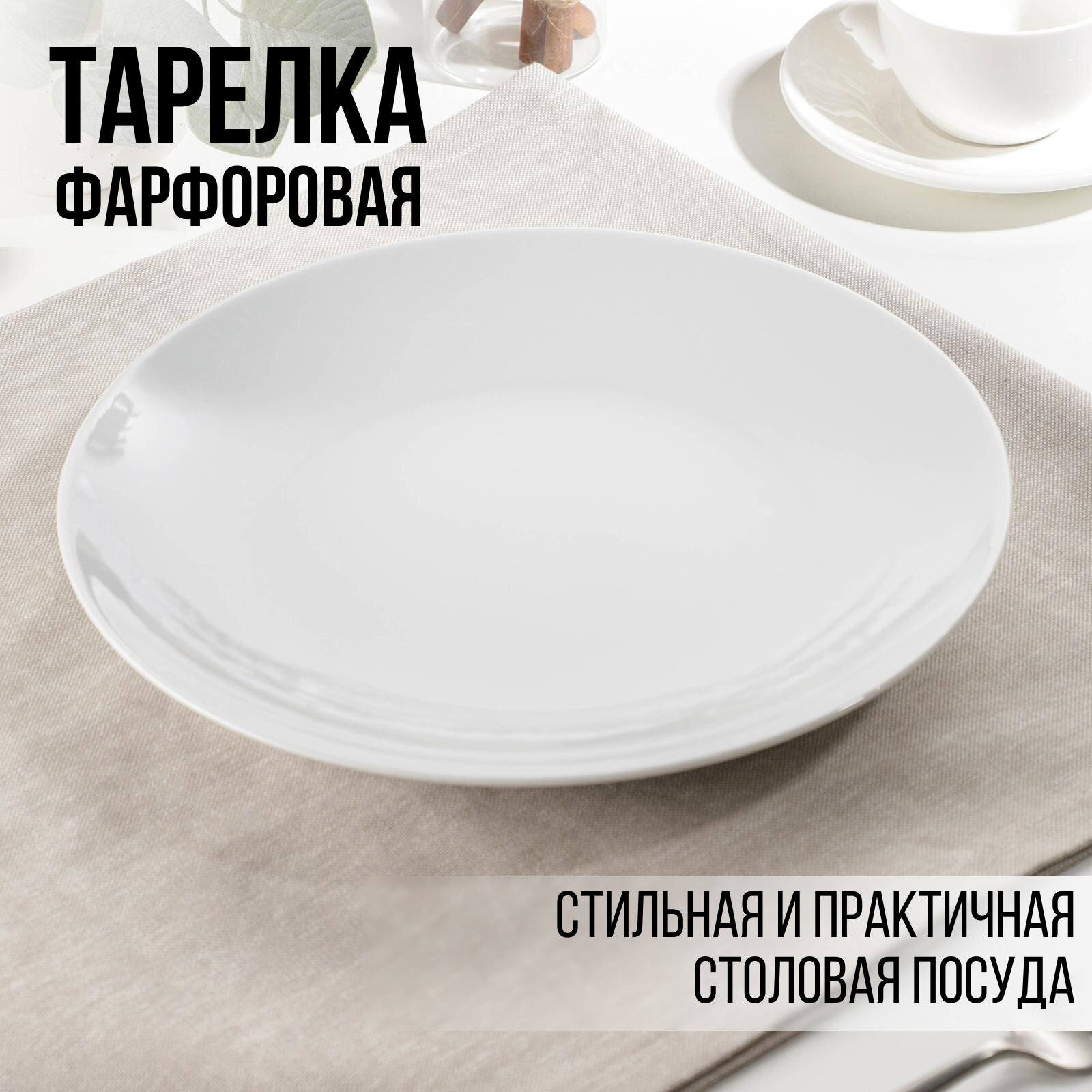 Тарелка фарфоровая для подачи и сервировки обеденная "Универсал", d=24 см