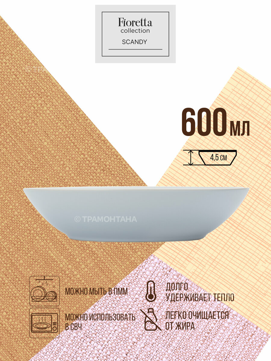 Тарелка суповая Fioretta La Belle Vie 400 мл, 1 штука, фарфоровая