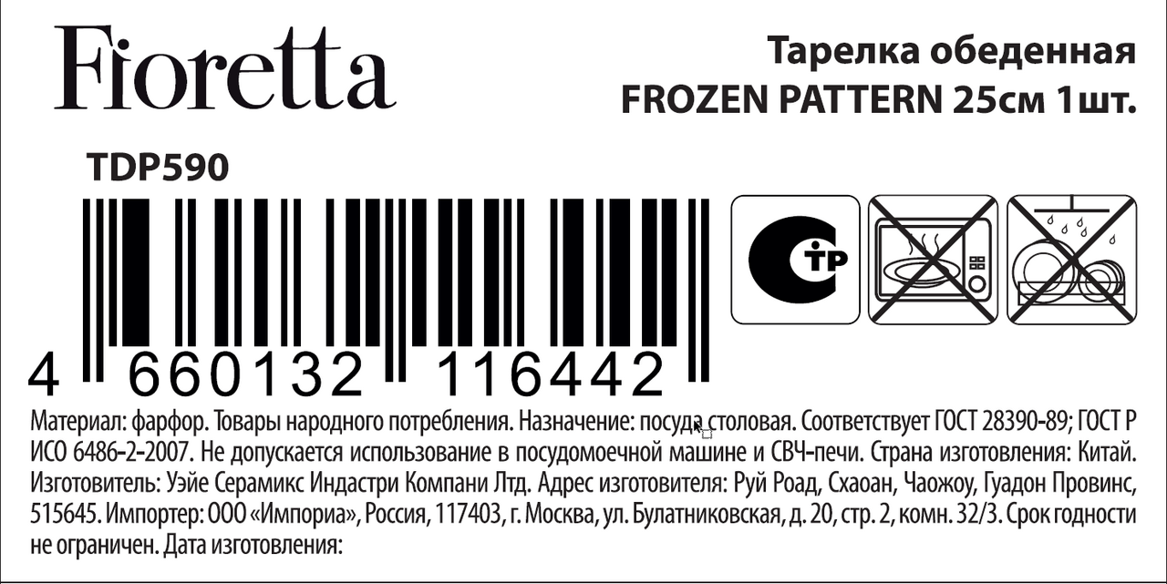 СохранитьТарелка обеденная Fioretta Frozen Pattern, 25 см, фарфор интересное:
