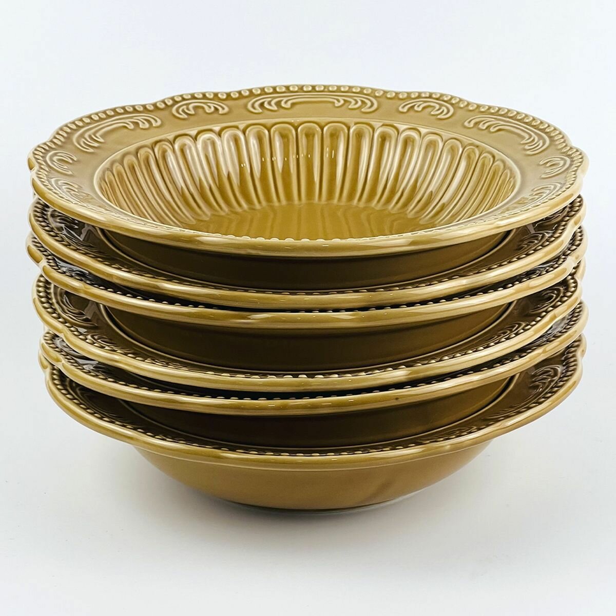 Купить Набор из 6 глубоких тарелок, 23 см. Керамика. Lenardi. Коллекция "Бавария". Цвет карамель. Подарочная упаковка.