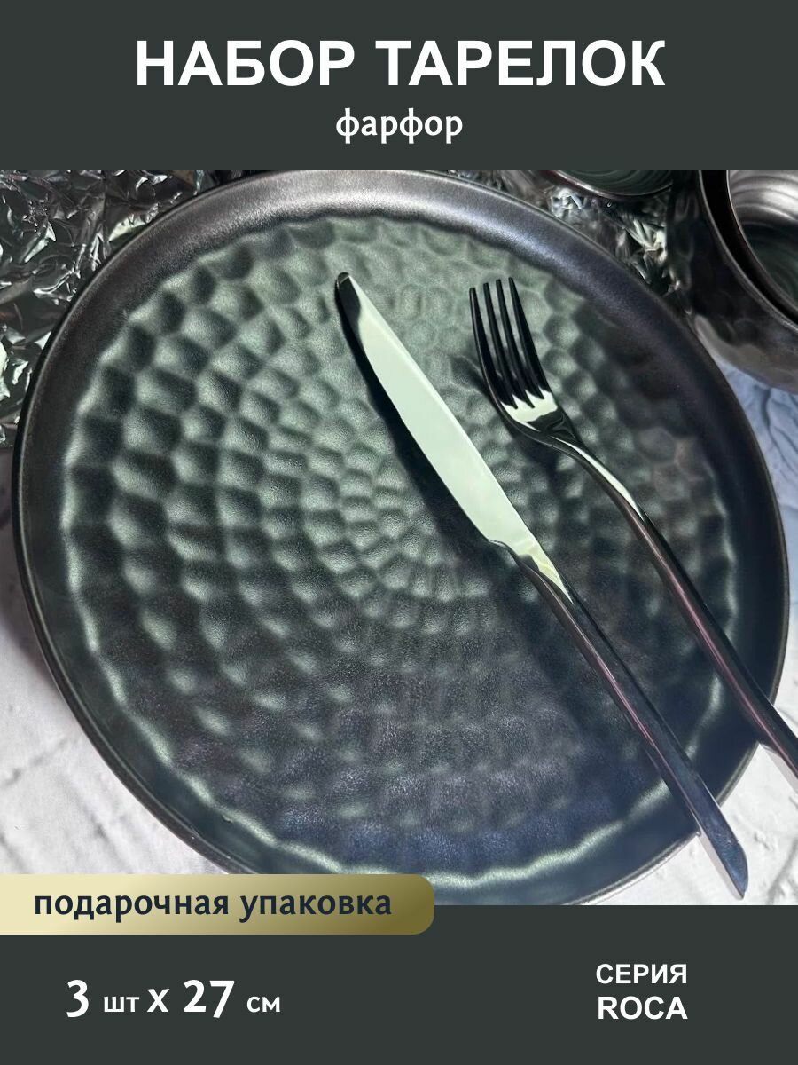 Купить Набор из 3 тарелок 27 см "Roca" Фарфор. Lenardi. Подарочная упаковка.