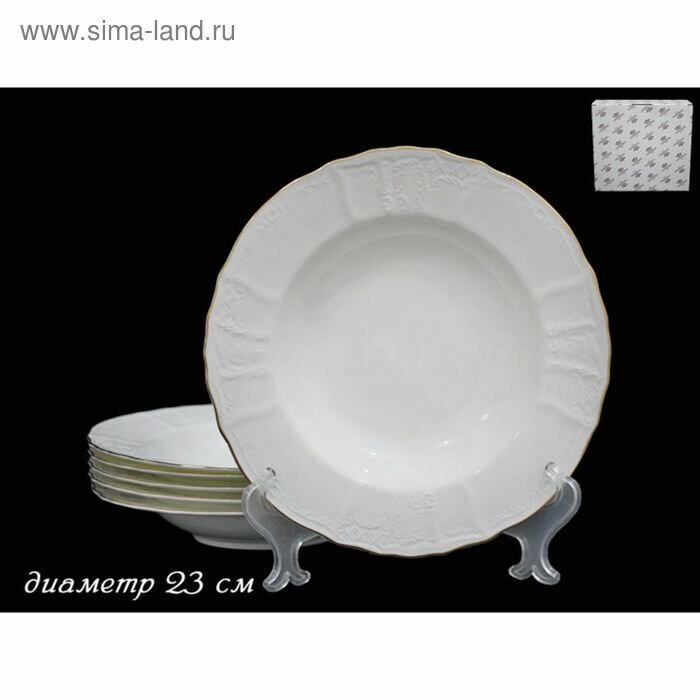 Набор из 6 глубоких тарелок 23 см. Фарфор. Lenardi. Коллекция "Maria Gold". Подарочная упаковка.