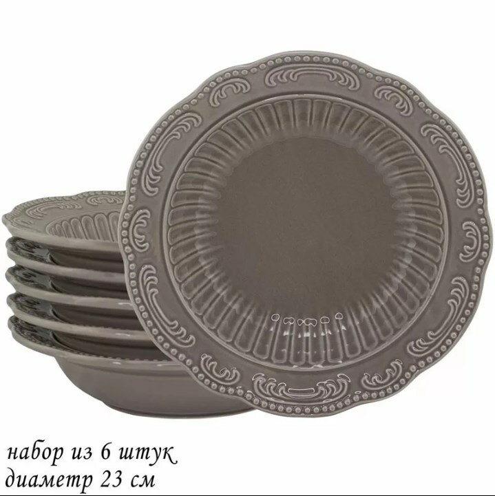 СохранитьНабор 6 штук Тарелка глубокая Lenardi Бавария 23см, серый, керамика интересное: