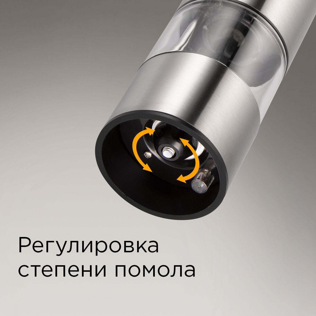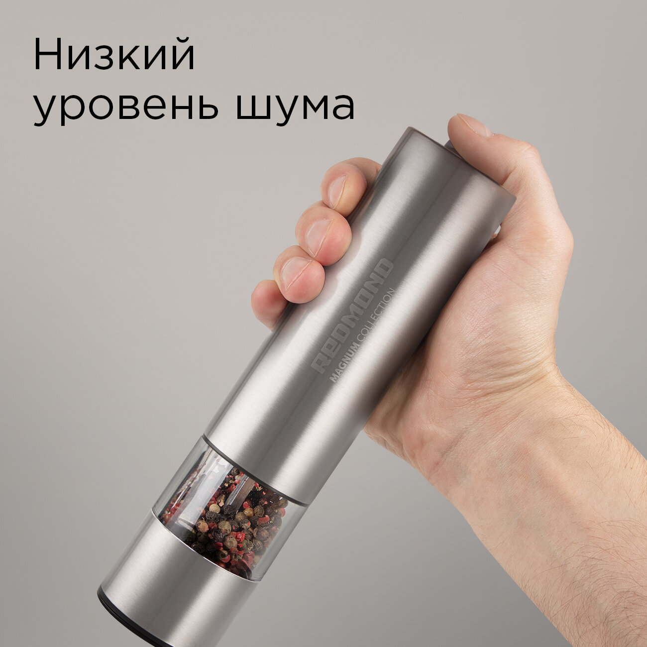 Мельница для специй электрическая REDMOND RKA-PM26, стальная, для соли, перца и специй, керамические жернова, подсветка