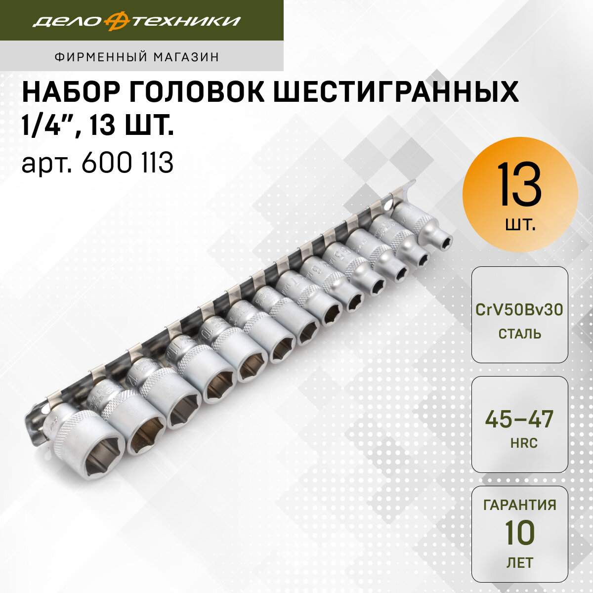 Набор головок шестигранных 1/4" 13 шт, Дело Техники, 600113 интересное: