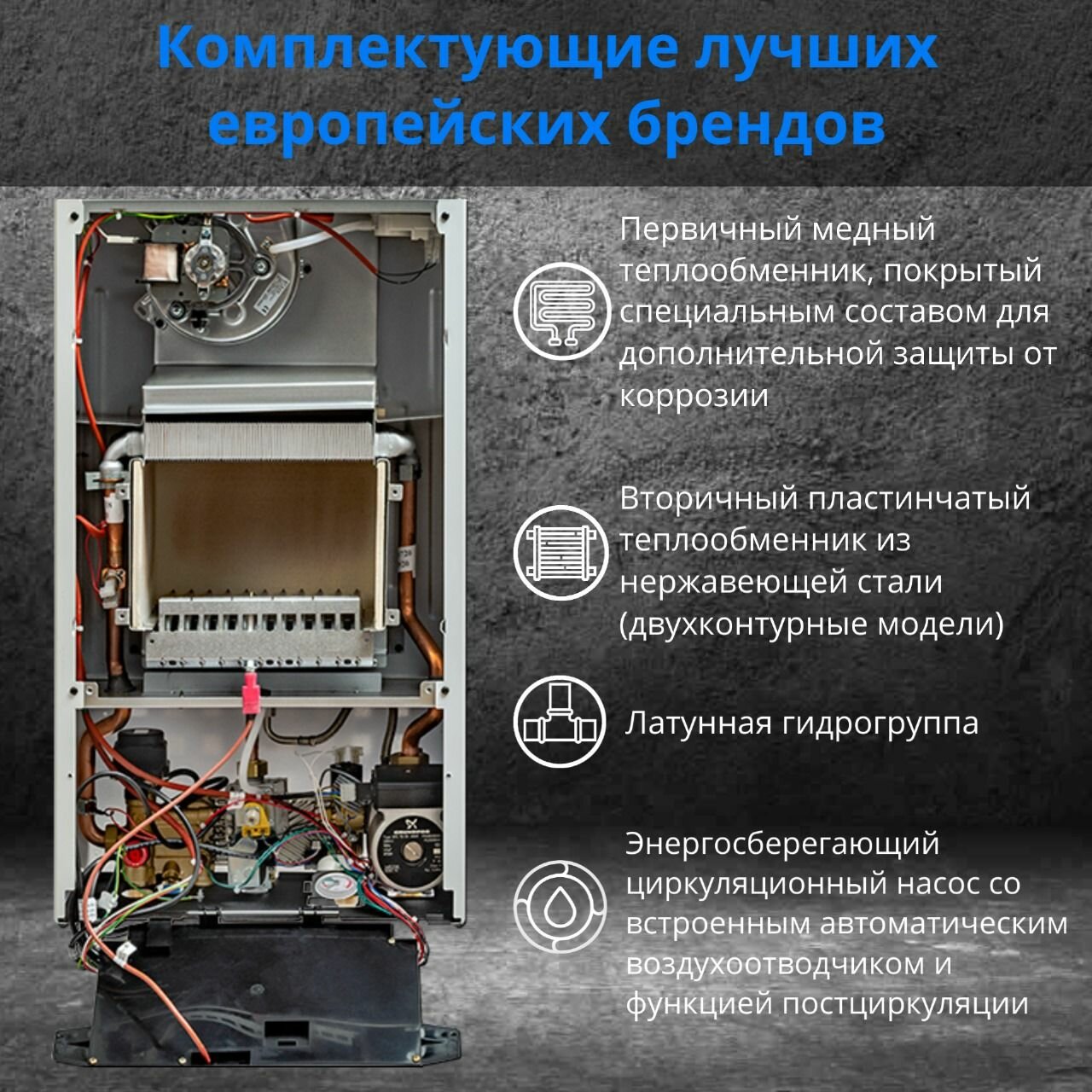 | Особенности | воздухоотводчик, встроенный расширительный бак, встроенный циркуляционный насос, манометр, термометр |