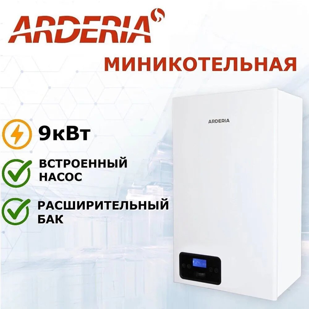 Электрический котел Arderia E9, v3, с возможностью подключения бойлера / одноконтурный / для отопления / сухой тэн / семисторная защита / Ардерия