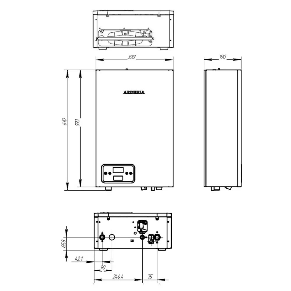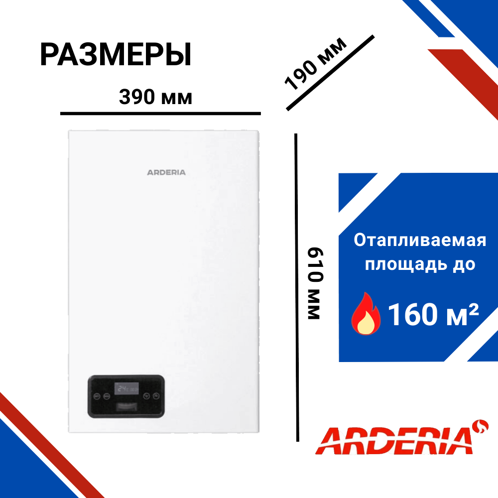 Электрический котел Arderia E24, с возможностью подключения бойлера / одноконтурный / для отопления / сухой тэн / семисторная защита / Ардерия
