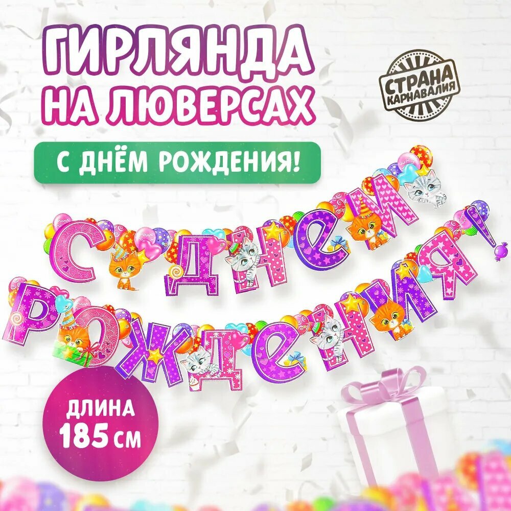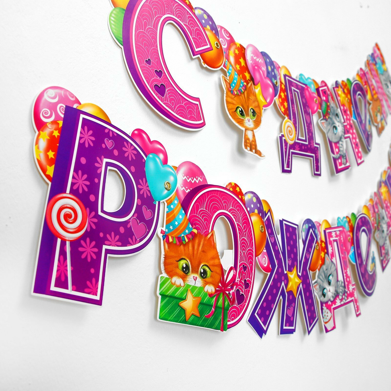 Гирлянда на люверсах "С Днем Рождения!", котята, дл. 185 см., Страна Карнавалия интересное: