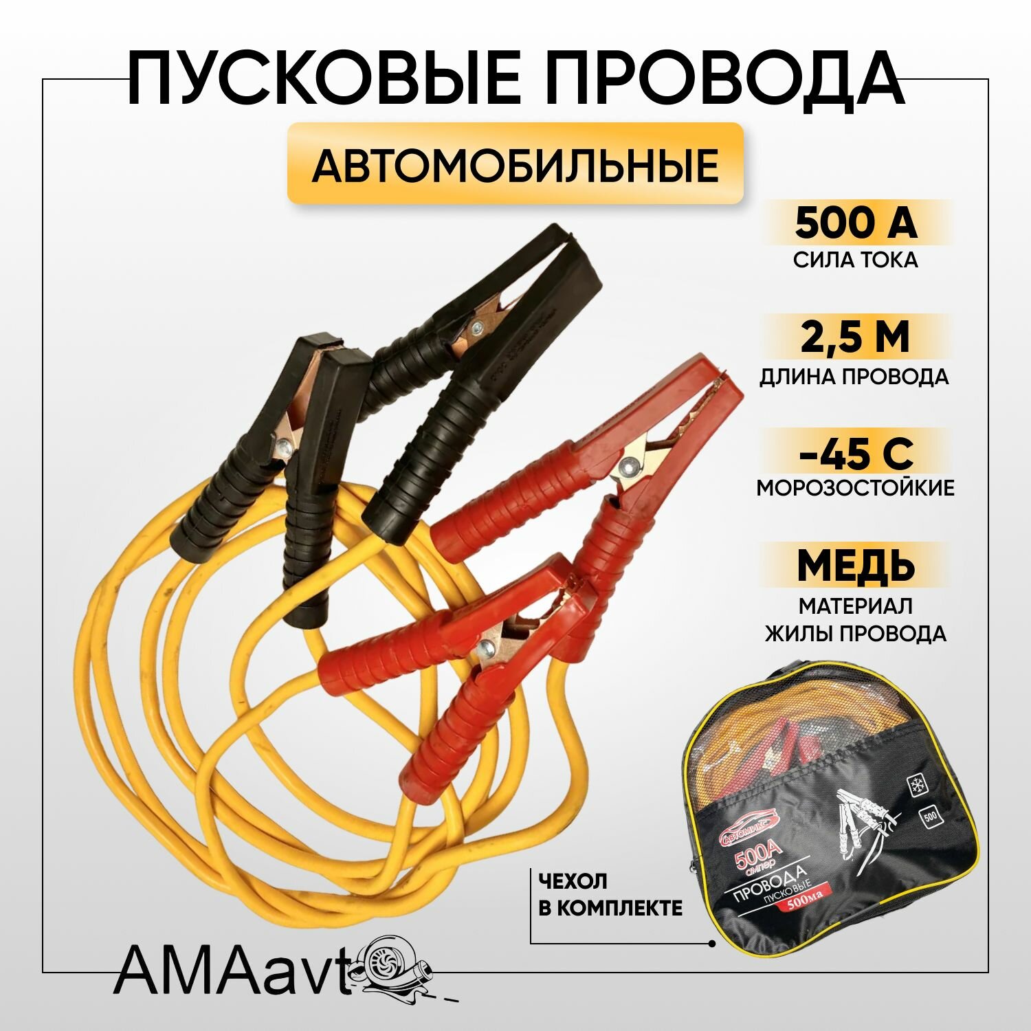 Автомобильные пусковые провода / провода для прикуривания 500А морозостойкие, в сумке, 2.5 м интересное: