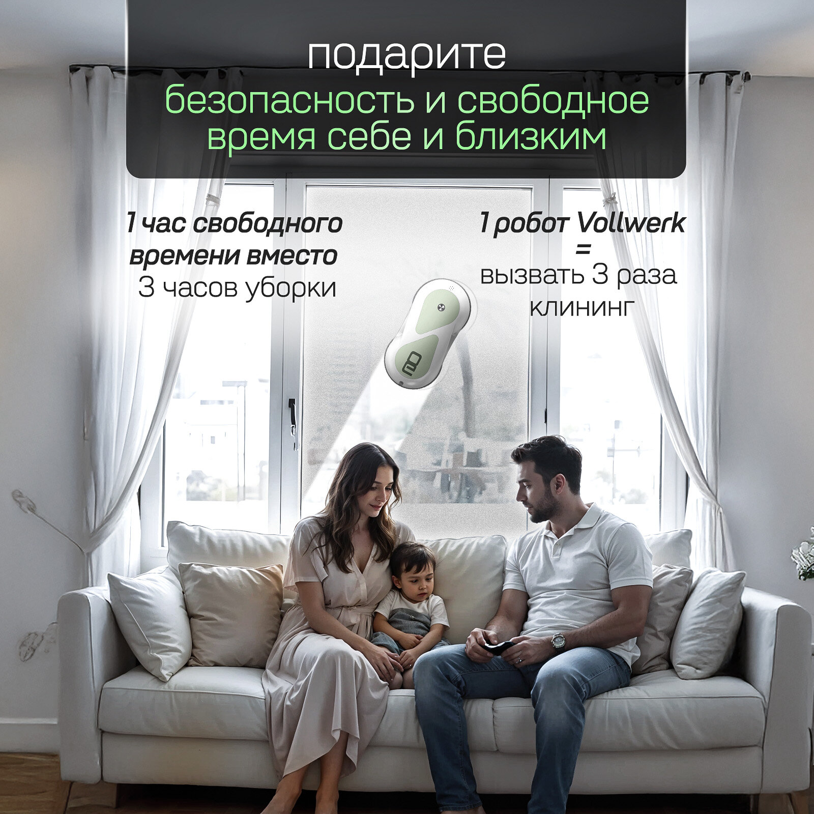 Робот-мойщик для окон Vollwerk Sapphire, с двойным распылением и датчиком обнаружения края, 18 салфеток, цвет сапфир