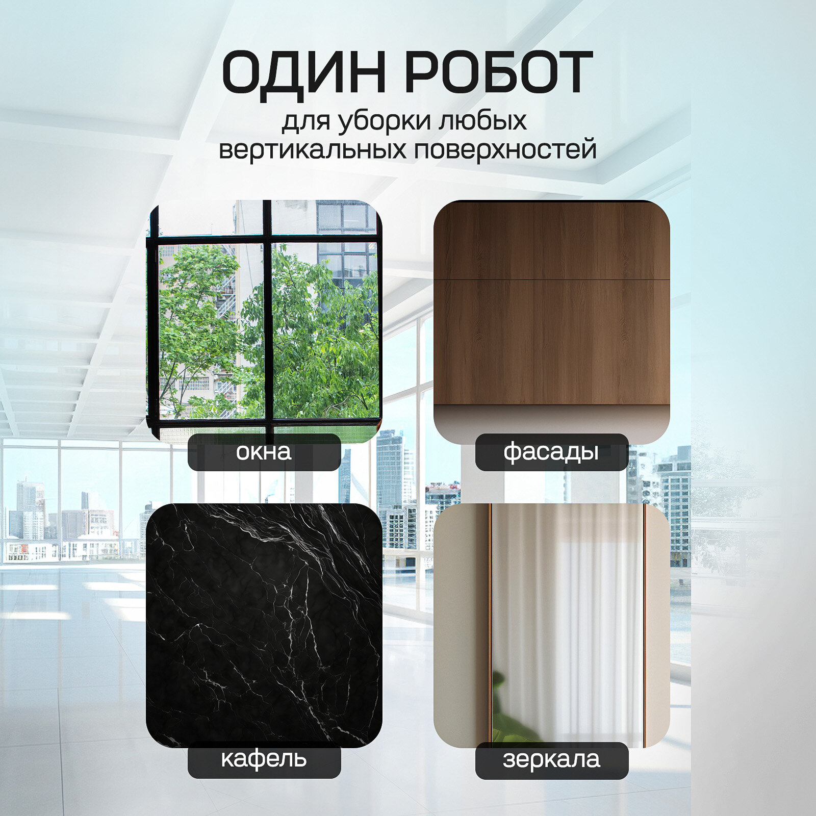 Робот-мойщик для окон Smart Black, с двойным распылением, 18 салфеток, цвет черный