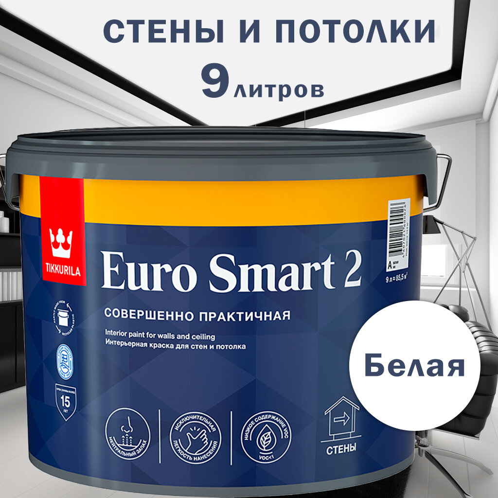 Tikkurila Euro Smart 2 краска интерьерная для стен и потолка 9 3473 .