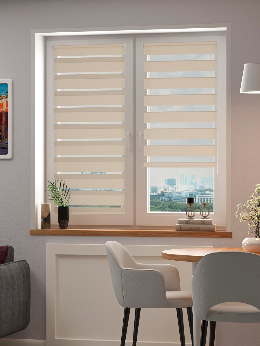 Рулонная штора на окна FixLine BASE День-Ночь 90х160 см, бежевый