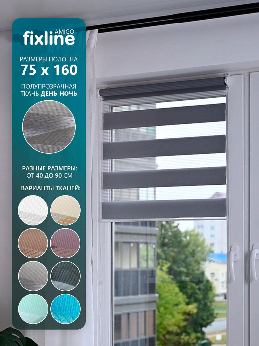 СохранитьРулонная штора на окна FixLine BASE День-Ночь 75х160 см, серый интересное:
