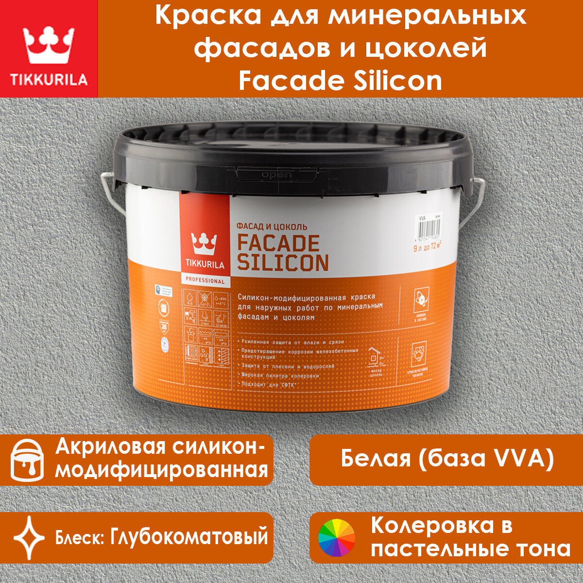 Тиккурила Фасад Силикон база VVA краска для фасада и цоколя (9л) / TIKKURILA Facade Silicon base VVA акриловая краска для фасадов и цоколей (9л)