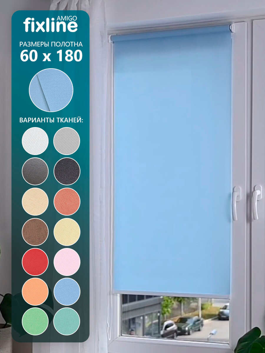 Купить Рулонная штора на окна FixLine BASIC Amigo 60х180 см, цвет голубой