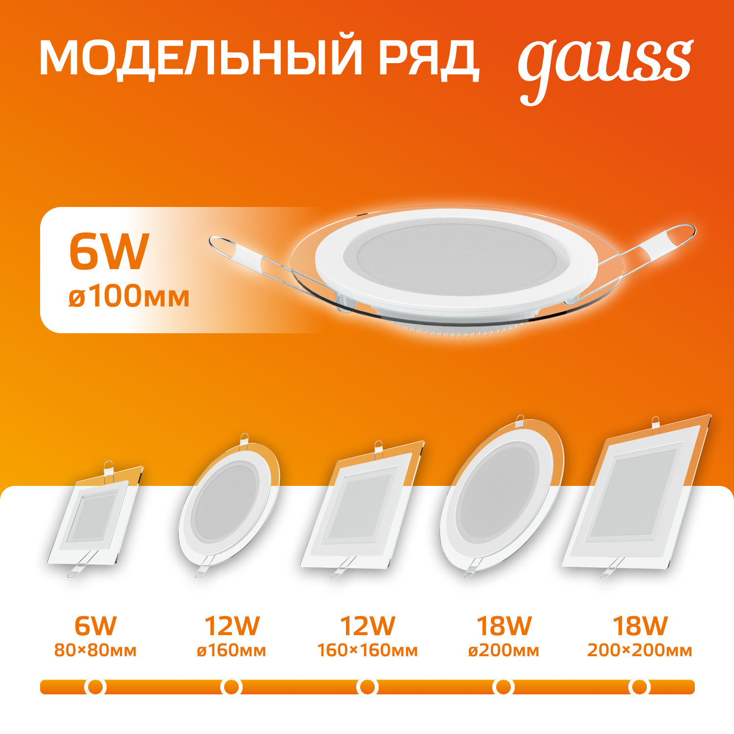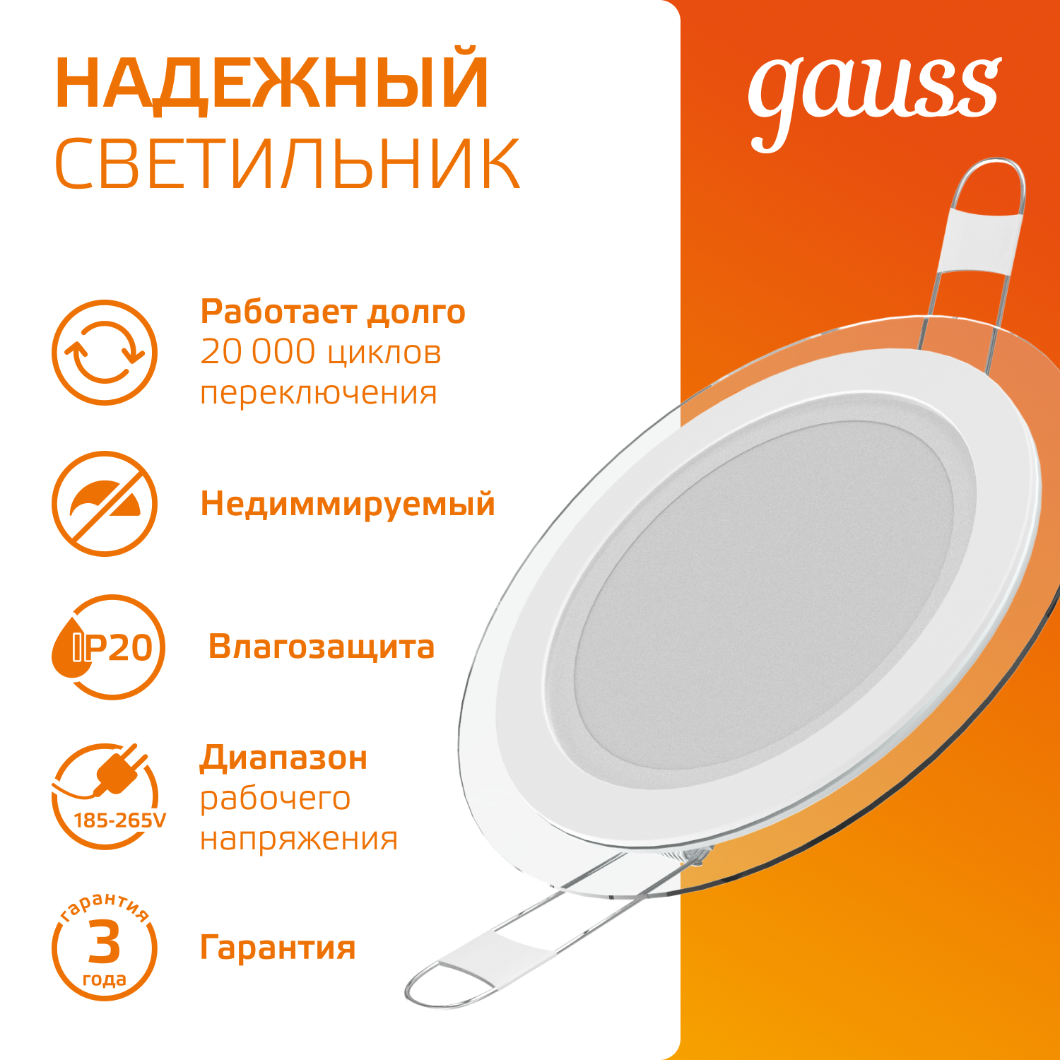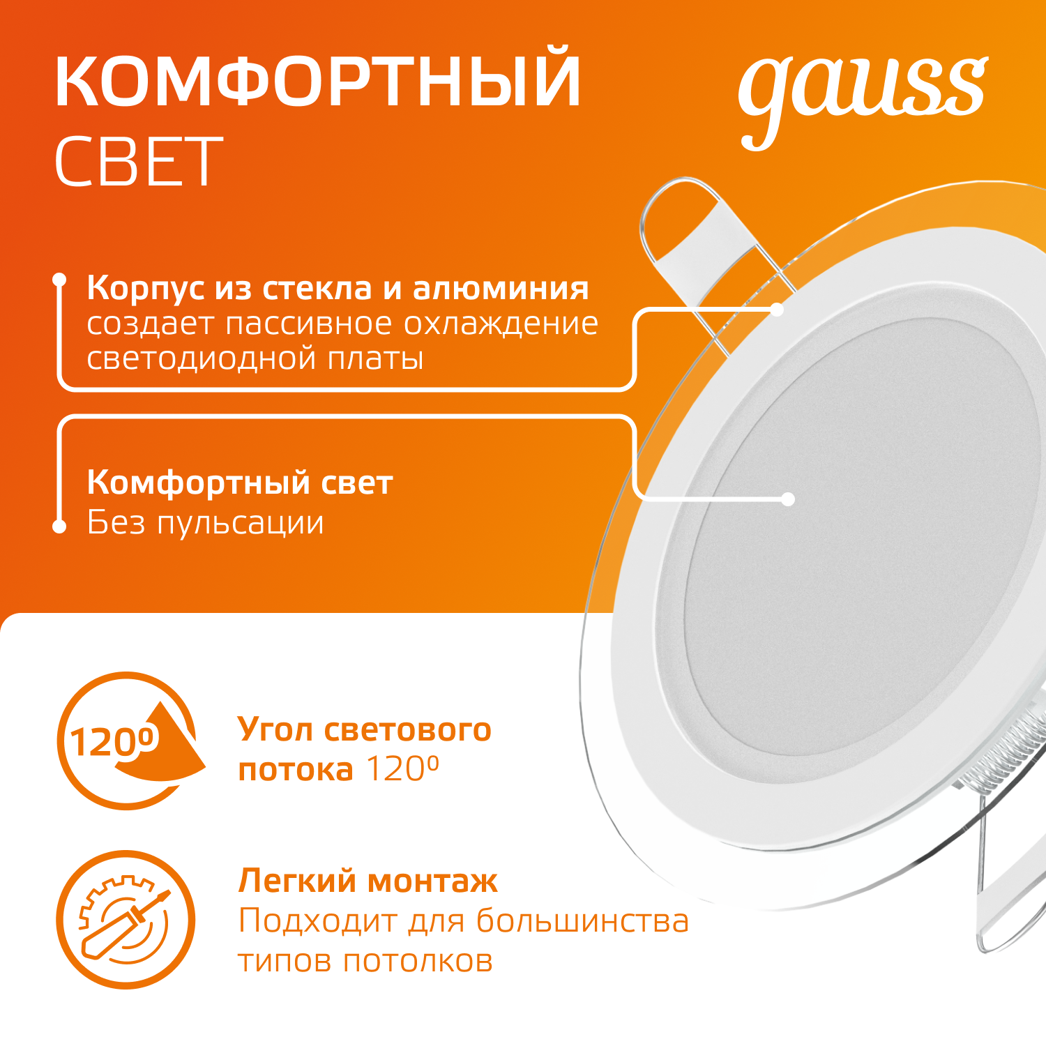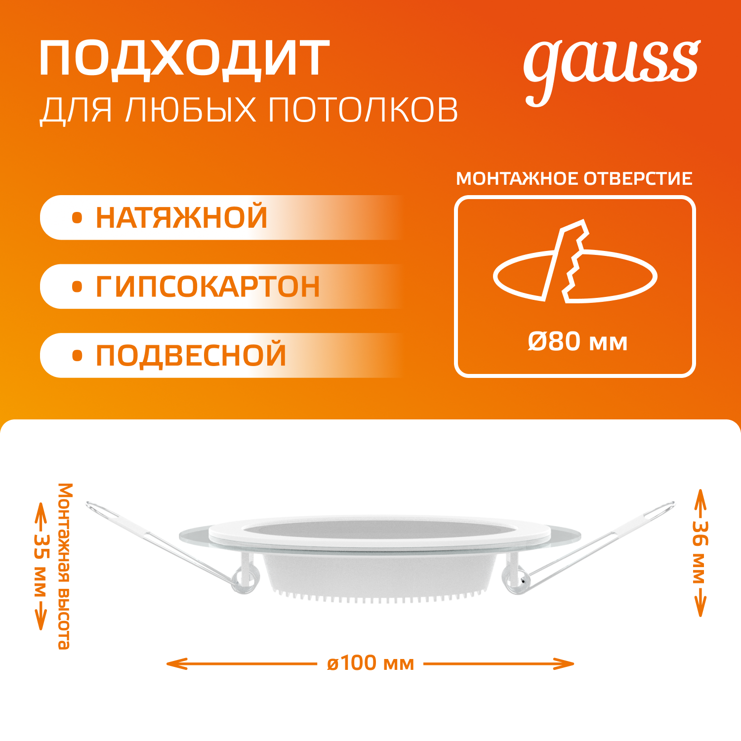 Купить Светильник потолочный встраиваемый 6W теплый свет 3000K 100*36мм 220V IP20 с декор стеклом Gauss Glass